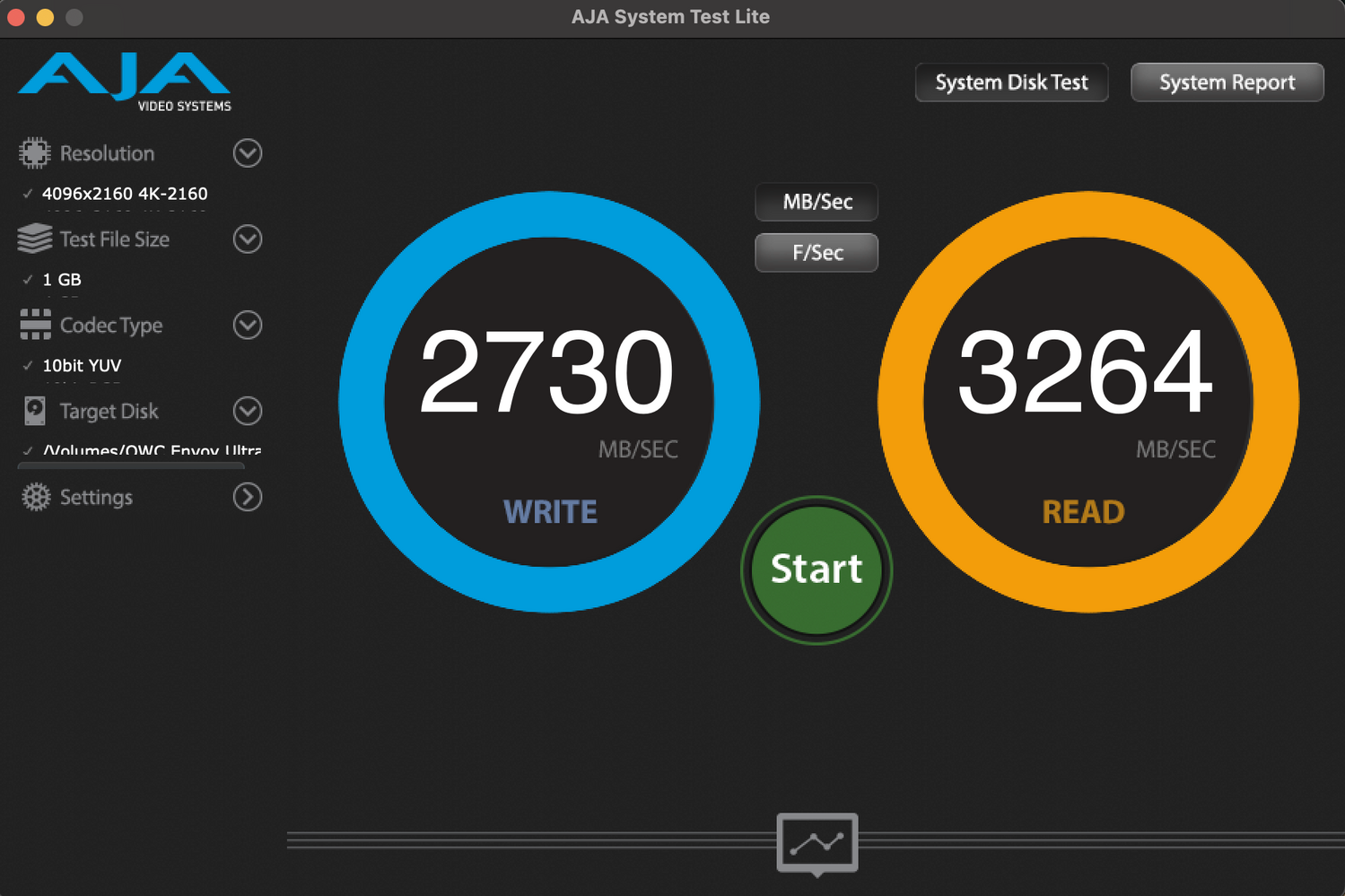Il est également crucial de noter qu’avec des écritures de données très volumineuses et continues, la vitesse du disque se stabilise à un débit soutenu. OWC estime cette vitesse après l’épuisement du cache à environ 1 350 Mo/s à 1 700 Mo/s, selon la capacité du disque. Ce comportement est normal pour les SSD lorsque leur cache se remplit. Néanmoins, cette vitesse soutenue reste incroyablement rapide et largement suffisante pour la plupart des tâches de montage vidéo à haut débit binaire. Les vitesses de lecture, en revanche, ne subissent aucune baisse, le disque offrant des débits remarquables lors de lectures synthétiques massives et de vérifications d’intégrité de fichiers.