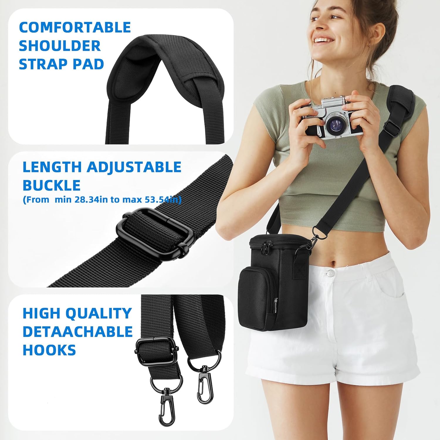Étui pour appareil photo portable : compact et léger, livré avec un passant de ceinture et une bandoulière amovible, cet étui pour appareil photo à bandoulière est idéal pour un usage quotidien et les voyages.