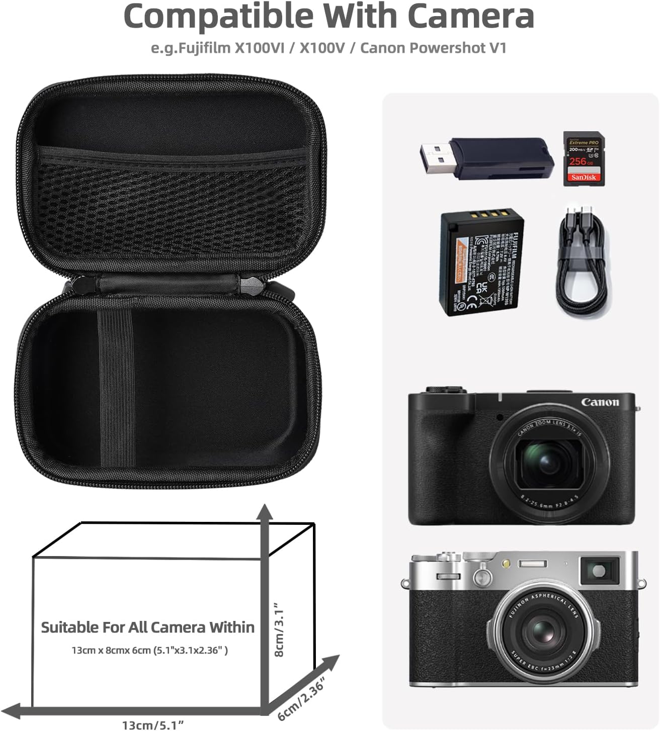 Compatibilité polyvalente : étui pour appareil photo conçu sur mesure parfaitement adapté pour les caméras de vlogging Canon Powershot V1,4K, caméra vidéo 5K, Fujifilm X100VI, X100V, X100F, X100S, Sony a6400 a6000, et vlogging vidéo 4K de taille similaire, appareils photo sans miroir et accessoires.