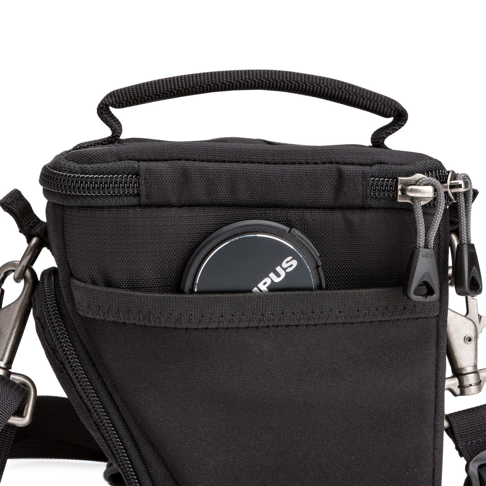 Pour une flexibilité maximale, cet étui propose deux options de portage : utilisez la bandoulière réglable fournie pour un transport confortable sur l’épaule, ou optez pour la fixation intégrée à la ceinture. Cette dernière se connecte aisément à toutes les ceintures compatibles avec les systèmes modulaires, offrant ainsi une solution de transport sécurisée et pratique, que vous soyez en randonnée, en reportage ou simplement en balade.