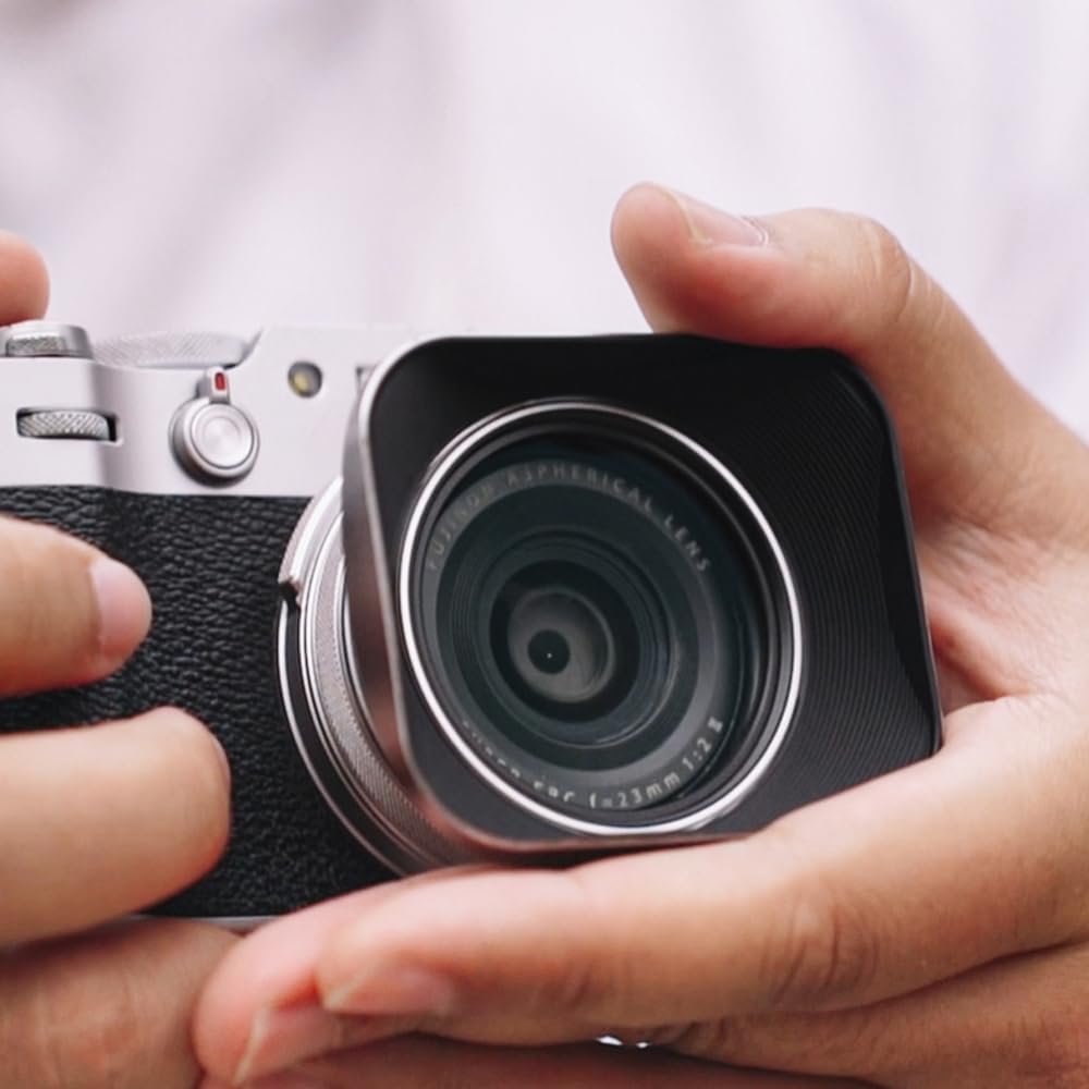 Le pare-soleil carré s’harmonise avec le style rétro de l’appareil photo, l’aspect argent titane se fond dans la couleur d’origine de l’appareil photo.