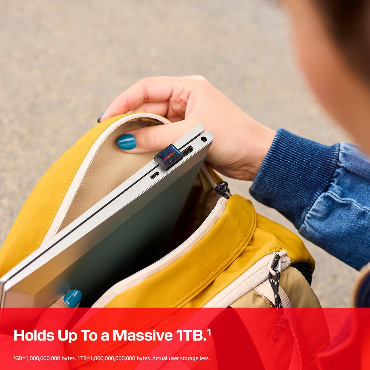 Le stockage USB-C plug-and-stay n’a jamais été aussi petit. La clé USB-C SANDISK Extreme Fit est une clé compacte de grande capacité qui s’intègre parfaitement dans votre vie numérique. Parfaitement compatible avec les appareils USB-C, c’est votre solution idéale pour un stockage et des transferts de fichiers sans effort sur ordinateurs et tablettes. Malgré sa petite taille, il offre jusqu’à 128 Go(1) de stockage, libérant ainsi de l’espace pour vos photos, vidéos, documents et bien plus encore. Profitez de transferts de fichiers rapides grâce aux vitesses USB 3.2 Gen 1 allant jusqu’à 400 Mo/s (128 Go – 1 To)(2). De plus, avec l’application SANDISK Memory Zone(3) pour les appareils Windows et Mac, la gestion et la sauvegarde de vos fichiers sont un jeu d’enfant, vous donnant encore plus l’assurance que vous êtes prêt à toute éventualité. (1)1 Go = 1 000 000 000 d’octets. 1 To = 1 000 000 000 000 d’octets. Stockage utilisateur réel inférieur. (2) Basé sur la vitesse de lecture, sauf indication contraire. 1 Mo/s = 1 million d’octets par seconde. Basé sur des tests internes ; les performances peuvent varier en fonction du périphérique hôte, des conditions d’utilisation, de la capacité du disque et d’autres facteurs. Port USB 3.2 requis. (3) Téléchargement et installation requis. Configurez la sauvegarde automatique dans les paramètres de l’application. Consultez le site Web officiel de Sandisk pour plus de détails sur l’application. (4) Voir www.sandisk.com/wug pour plus de détails. (5) Sur la base des dimensions au 24 juin 2025.